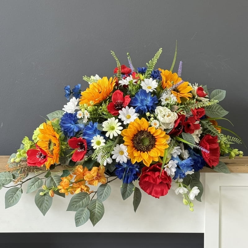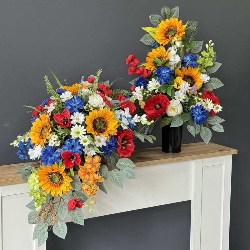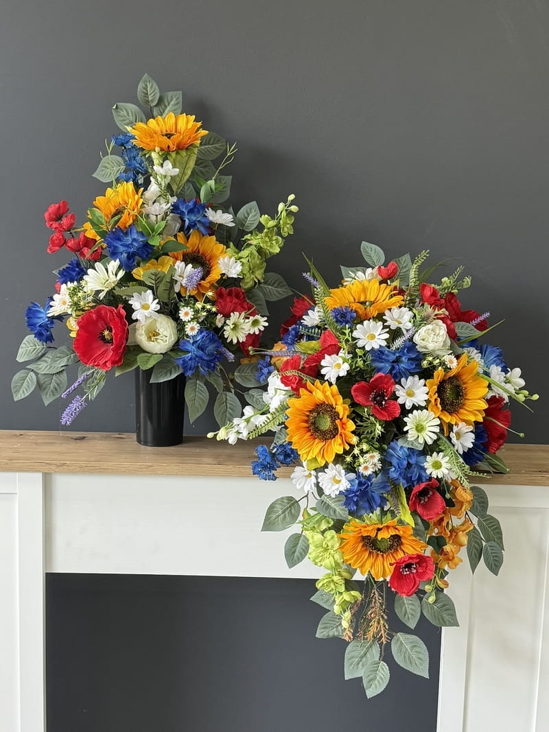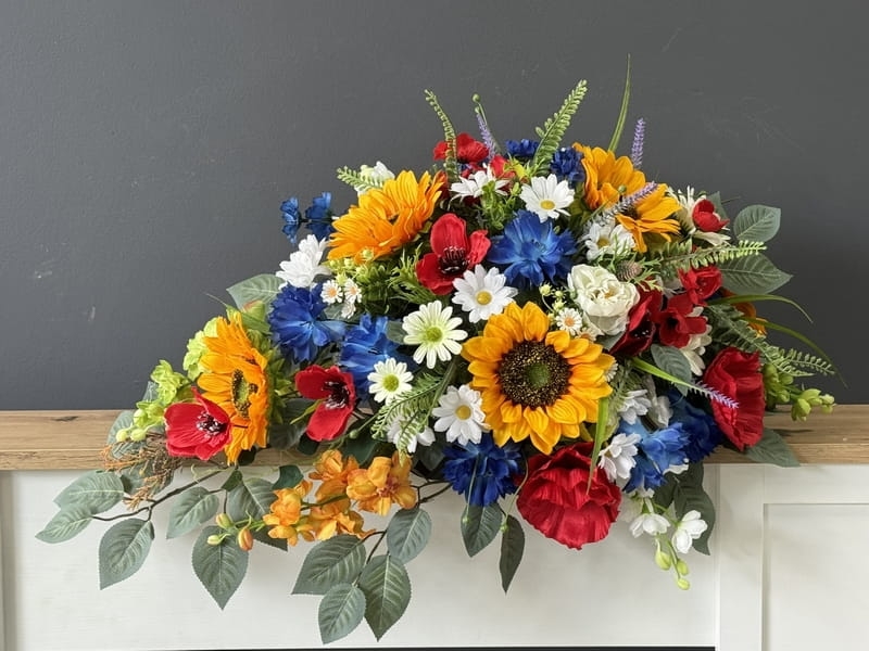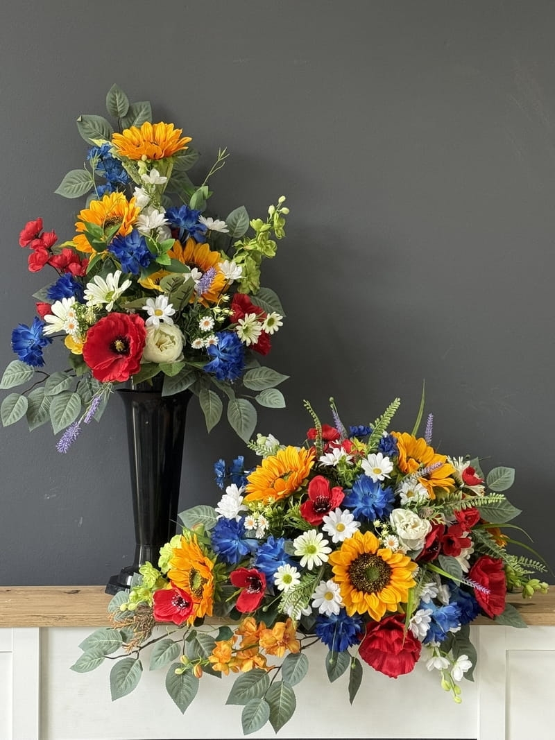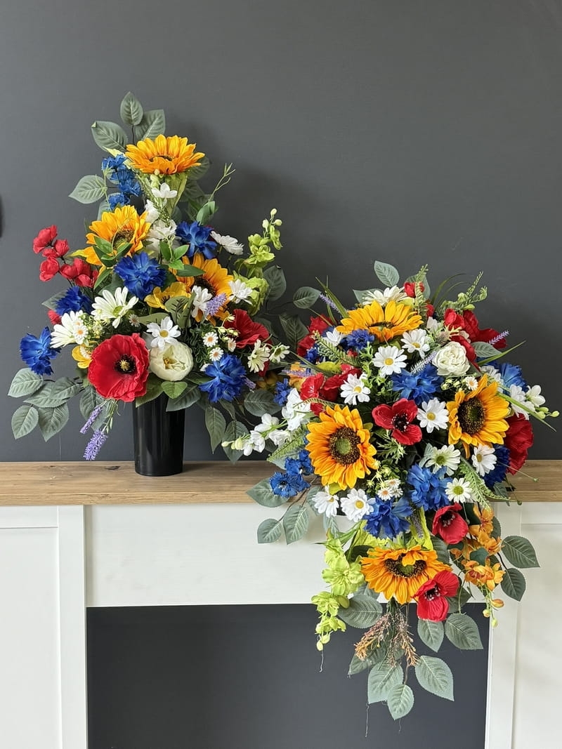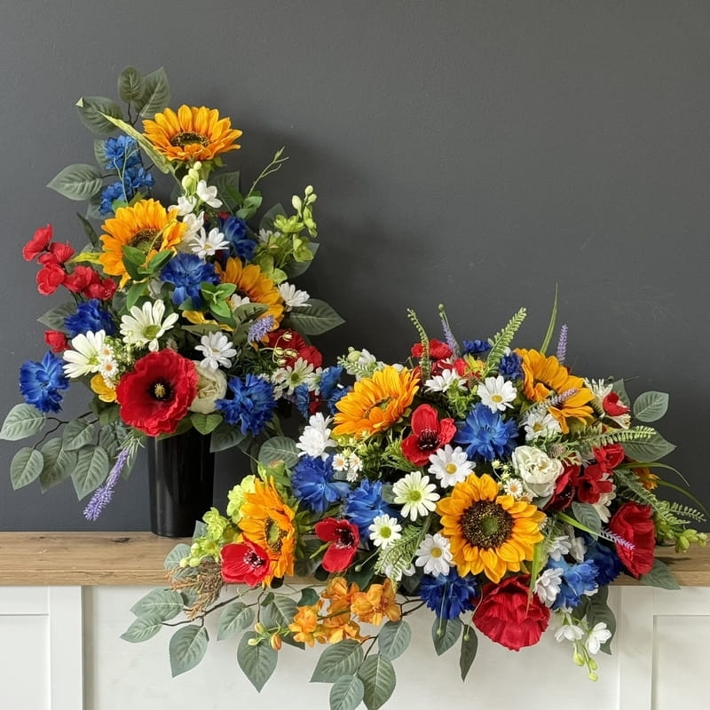 Zestaw nagrobny kompozycja na płytę + bukiet do wazonu polne kwiaty