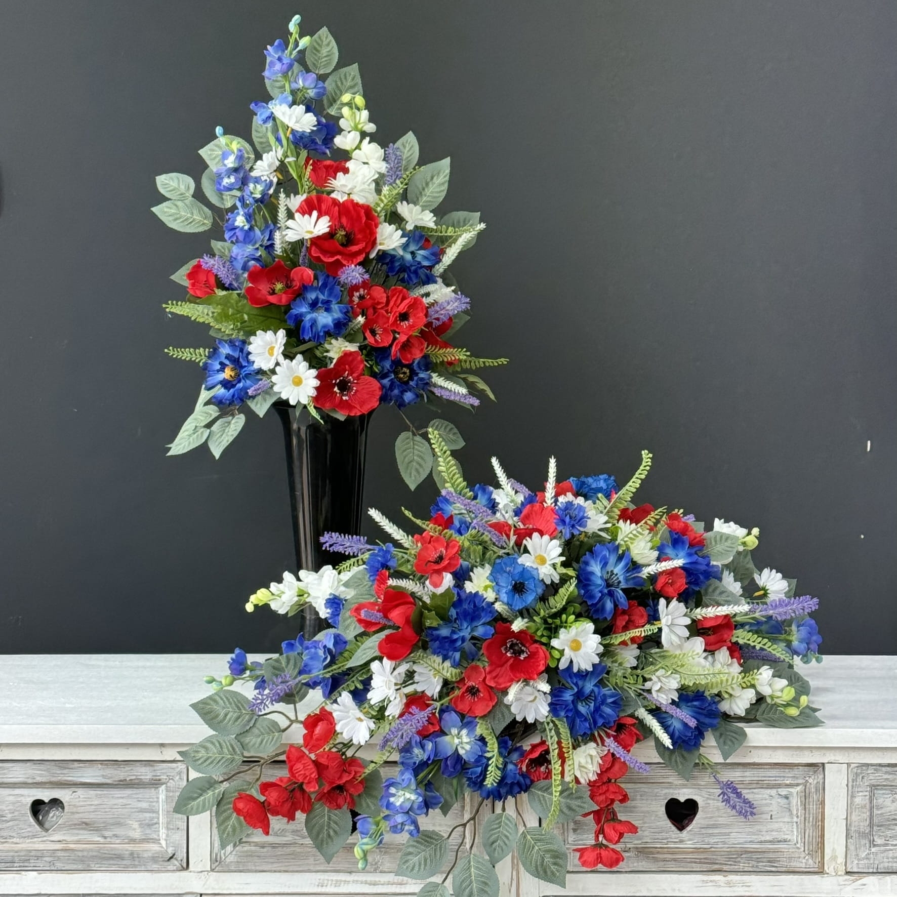 Zestaw nagrobny kompozycja na płytę + bukiet do wazonu polne kwiaty